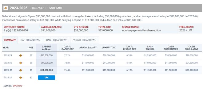 文森特今年只剩下一年1150万的合同,他多次陷入交易流言当中,他、里夫斯、克内克特、克勒贝尔、八村垒这些球员几乎是‘换遍全联盟’,湖人媒体每一次的交易建议都会拿他们当筹码,如今文总这个状态,还换吗?