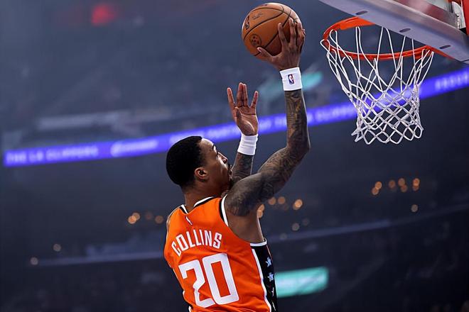 本场比赛中,快船虽然输掉了比赛,但是球队的先发锋线球员约翰-科林斯(John Collins)的表现还是值得肯定的。科林斯全场出场36分03秒,投篮10中9,三分线外2中1,罚球2中2,得到了21分4篮板1助攻3盖帽的数据,还有1次失误和2次犯规,正负值为+1。科林斯在进攻端的效率相当出色,他展现出了超强的篮下终结能力以及不俗的投射能力。在出手次数不多的情况下,他能够得到这么多的分数,并不是一件容易的事情。不仅如此,科林斯本场比赛中在防守端的表现也是可圈可点的,他也是能够利用自己在运动能力方面的优势为球队提供帮助。可惜快船第二阵容的竞争力一塌糊涂,球队最终还是有些遗憾地输掉了比赛。