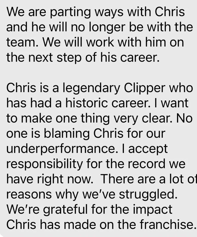 然后快船总裁弗兰克就发布了一条声明